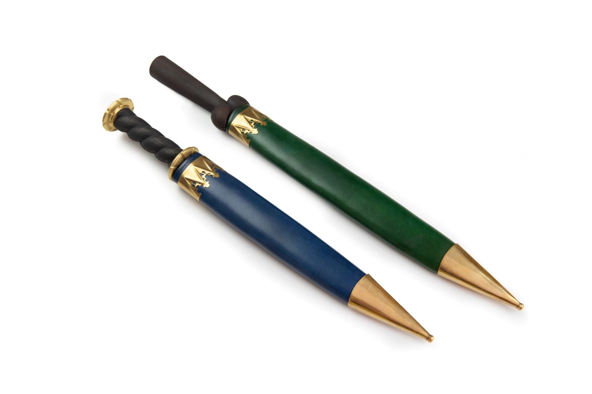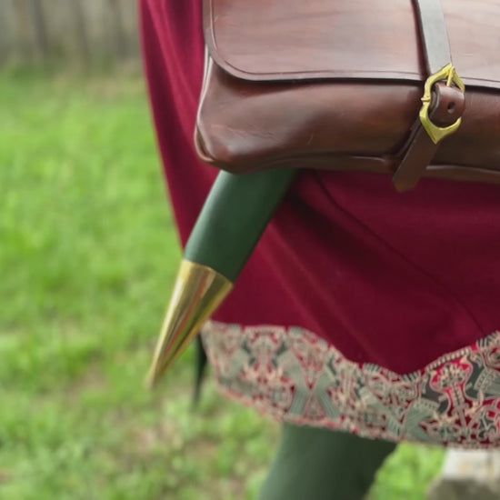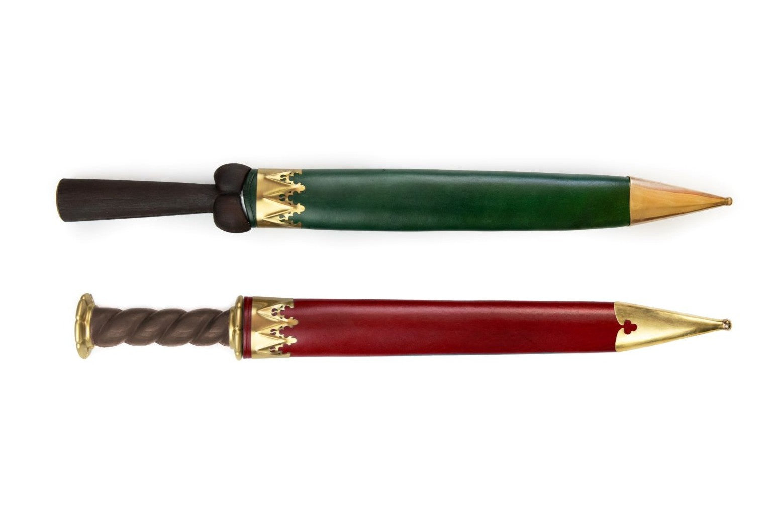 Decorative leather sheath for our daggers. This sheath type features arches decorations made out of solid brass.
