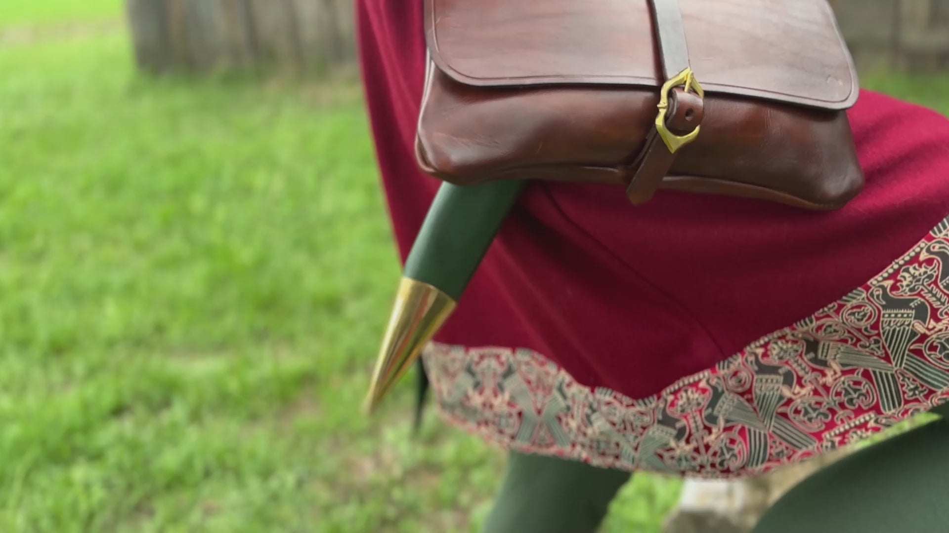 These sheaths are made from 4mm thick leather and hand sewn and dyed in our workshop in the Czech Republic. They can be tied to the belt with a string on the back of the sheath. The sheath is made to fit the length of the dagger blade you order with it.