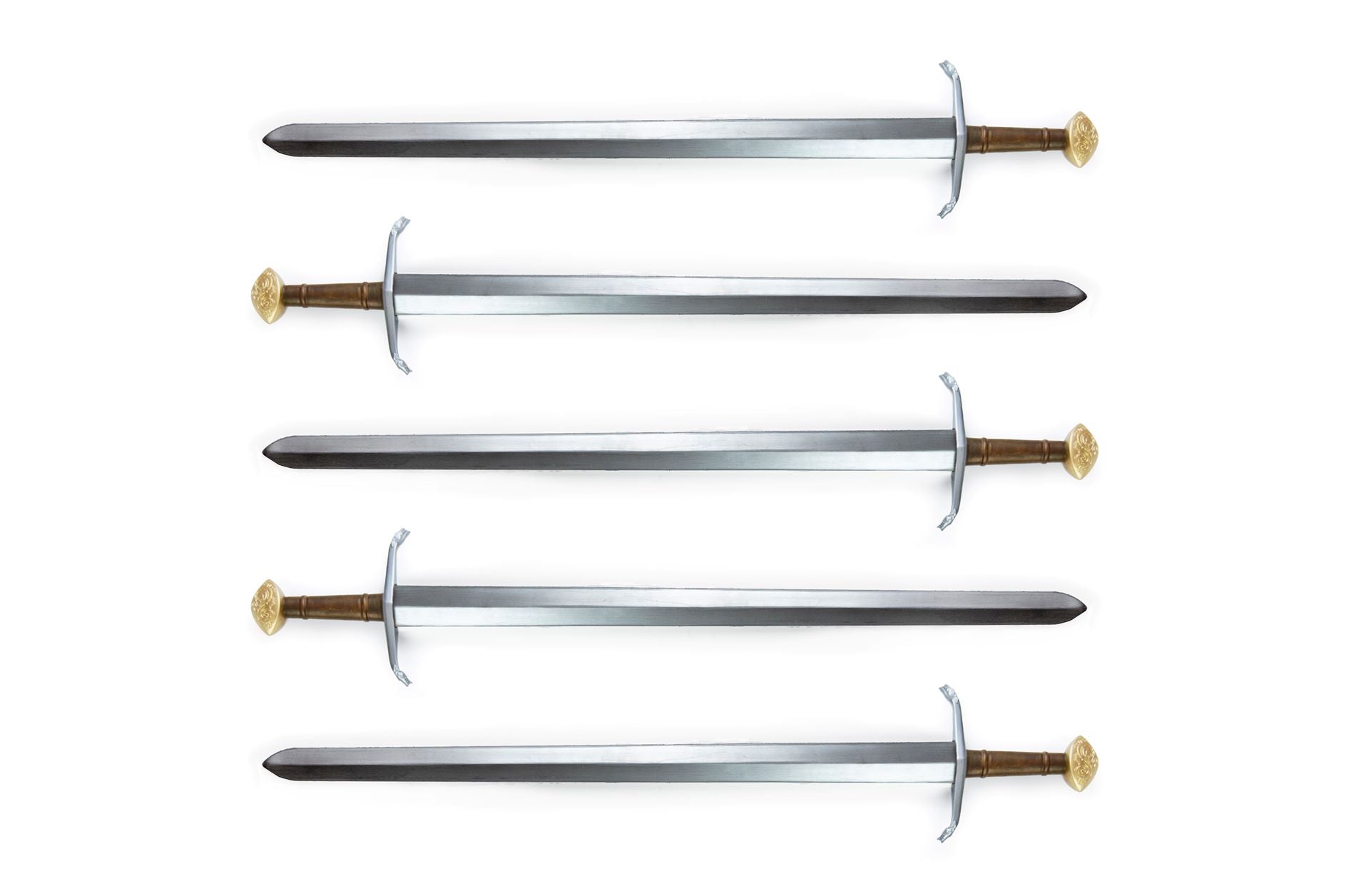 Avoid cutting the weapons with sharp objects, likewise do not hit hard or rough objects, like rocks, benches or trees. Try to avoid substantial blows to edges of armor, especially things like swordbreakers. Also, pay attention to the potential sharp edges of your own gauntlets, as some can cut into cross guards or other parts of the hilt when fencing. Make sure to avoid long term compression of the eapons, especially during storage. Our cross guards are made of hard rubber and do not mind blows in combat, they bend slightly but return immediately. The cross guards however can get deformed with extreme bending over longer periods, when they are for example put under luggage in the trunk of a car or in a chest.