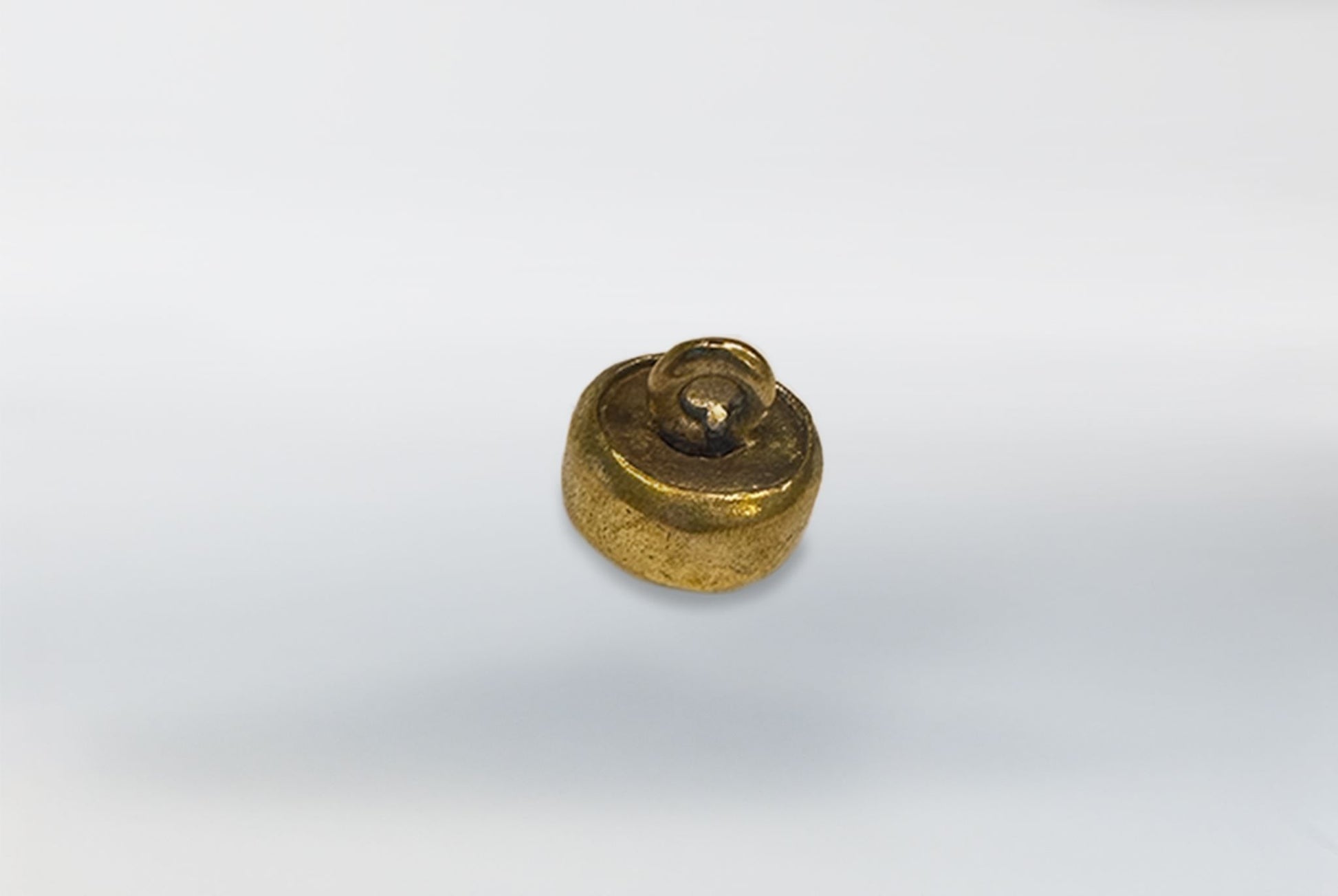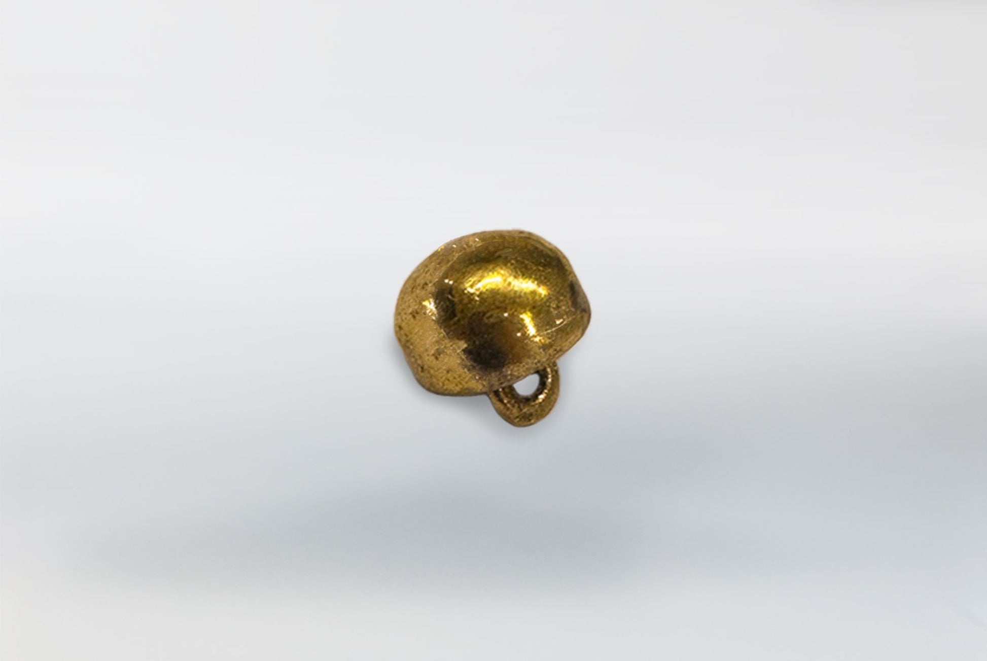 Buttons we used are handmade from pure brass. They are hollow, which makes them quite light. Spherical hollow buttons like these are the typical design for much of history.