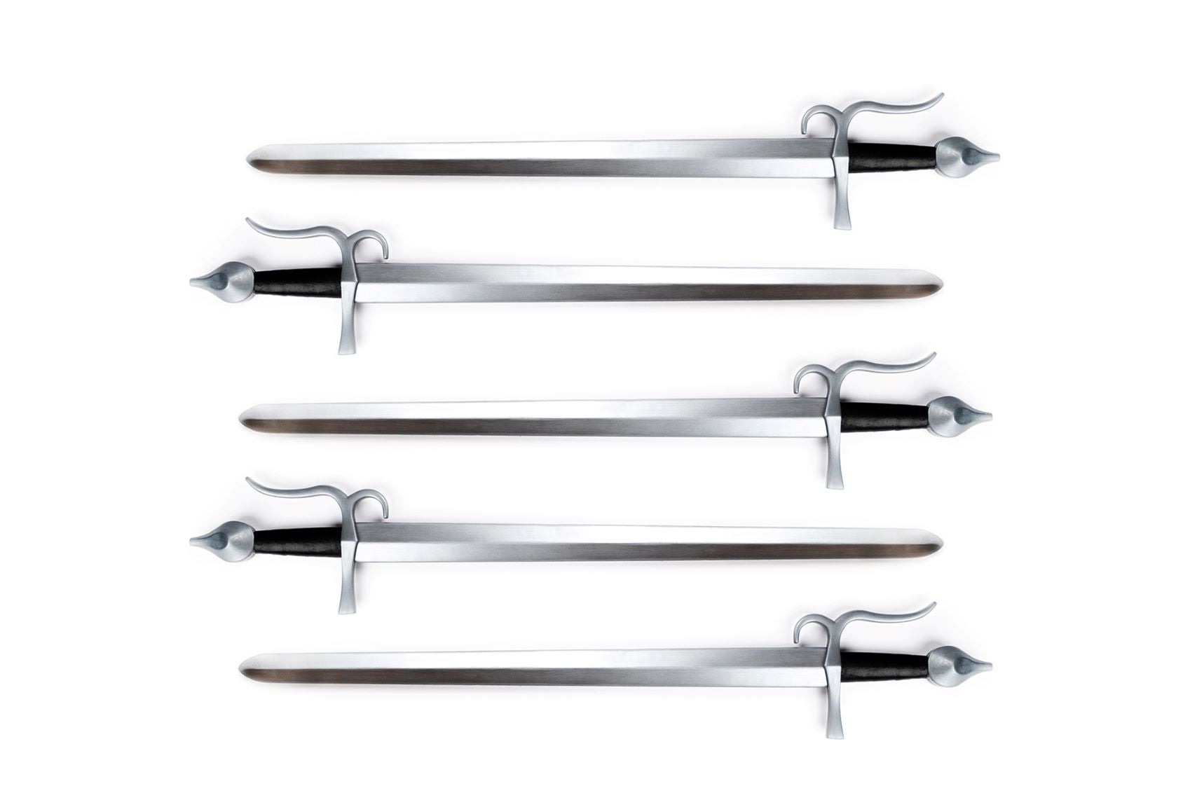 Avoid cutting the weapons with sharp objects, likewise do not hit hard or rough objects, like rocks, benches or trees. Try to avoid substantial blows to edges of armor, especially things like swordbreakers. Also, pay attention to the potential sharp edges of your own gauntlets, as some can cut into cross guards or other parts of the hilt when fencing. Make sure to avoid long term compression of the eapons, especially during storage. Our cross guards are made of hard rubber and do not mind blows in combat, they bend slightly but return immediately. The cross guards however can get deformed with extreme bending over longer periods, when they are for example put under luggage in the trunk of a car or in a chest.