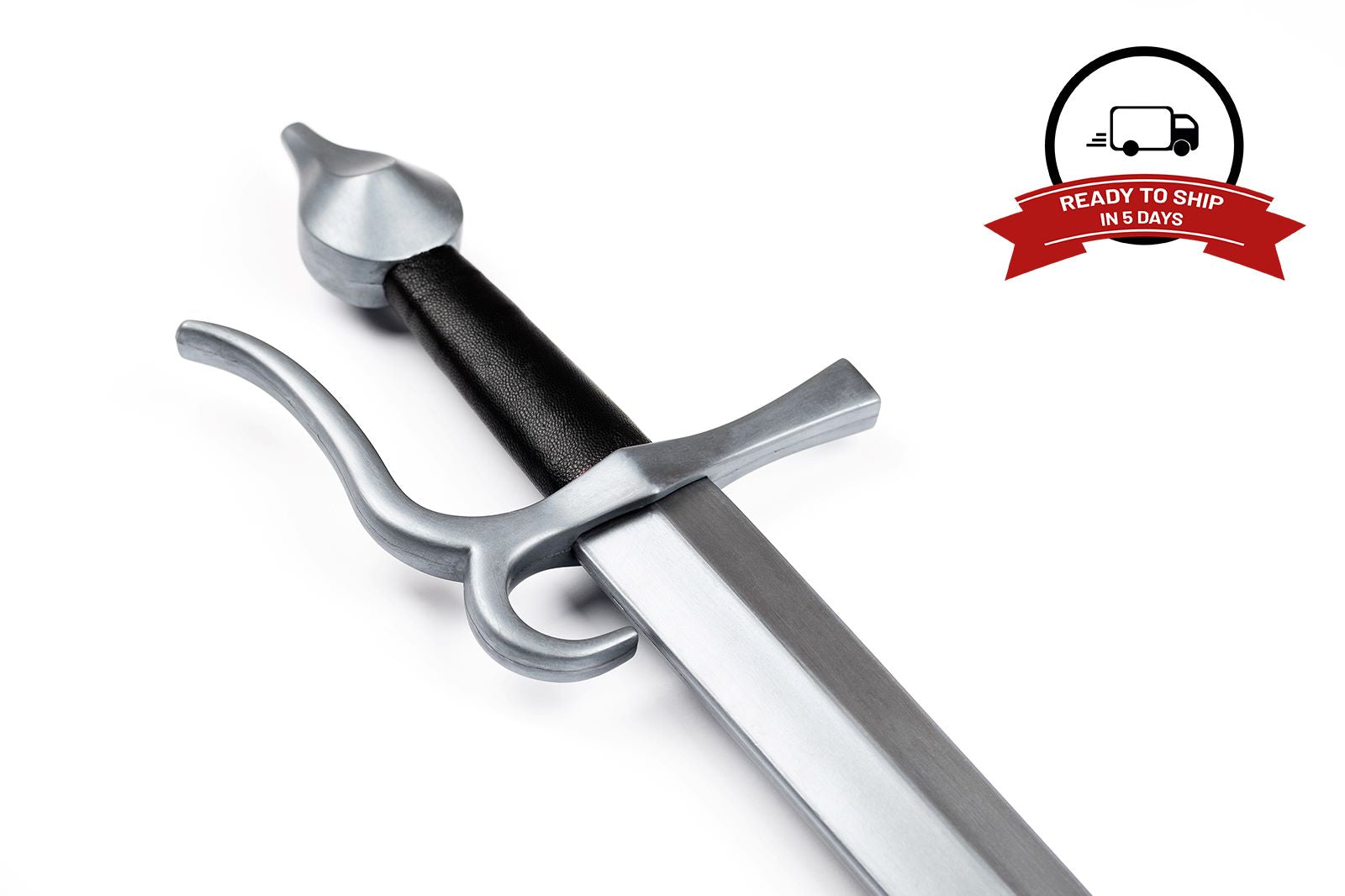 Our LARP foam Doge sword is based on surviving examples from the 15th century from the Doge museum in Venice. Its curved knuckle guard with a finger protector is commonly found on swords from this area and the distinctively shaped pommel likewise sets it apart from other medieval and renaissance swords. To fit this sword, we designed a narrower 4,5cm double-edged Doge blade, which makes it easier to utilize the finger guard.