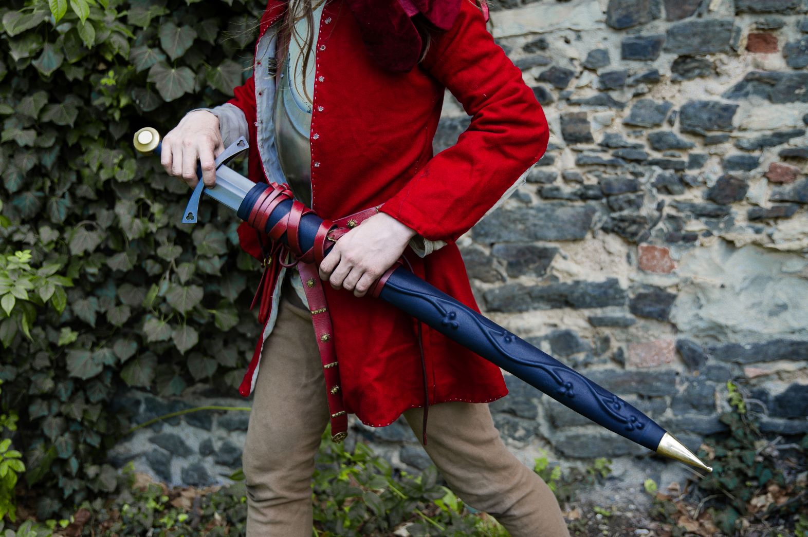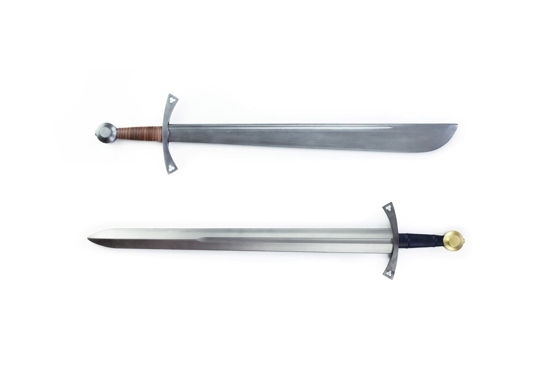During the production we were mainly inspired by the so-called "Thorpe falchion", found in England in the riverbed of Yare near the town of Thorpe St. Andrew. This sword is usually dated to the beginning of the 14th century. When paired with a single edged blade, it makes for an ideal backup LARP weapon for any archer or spearman, but when combined with a double-edged sword blade, it also works great as a regular sword for a knight or a fencing master.