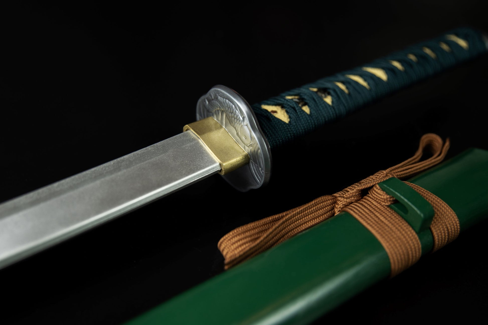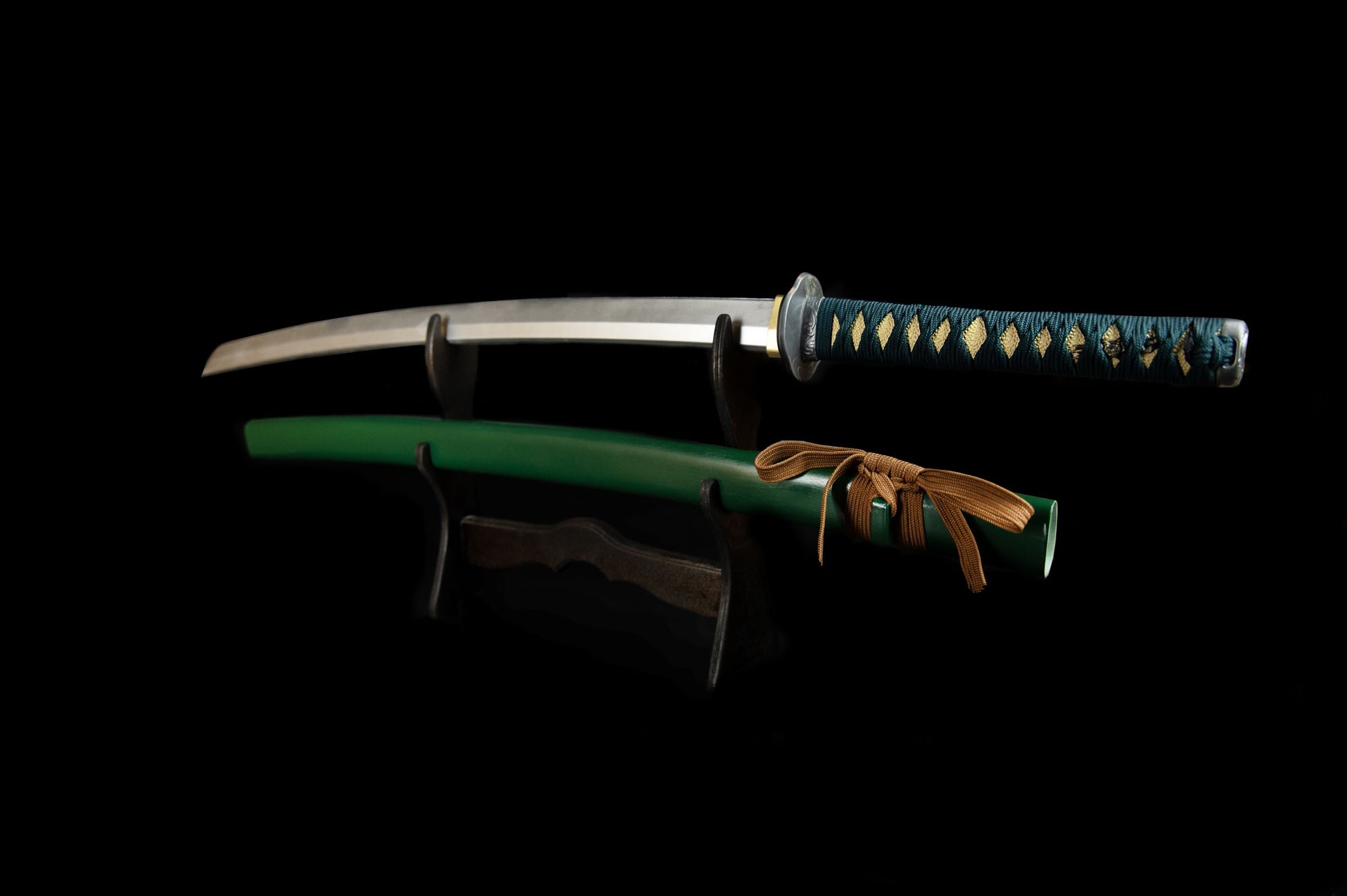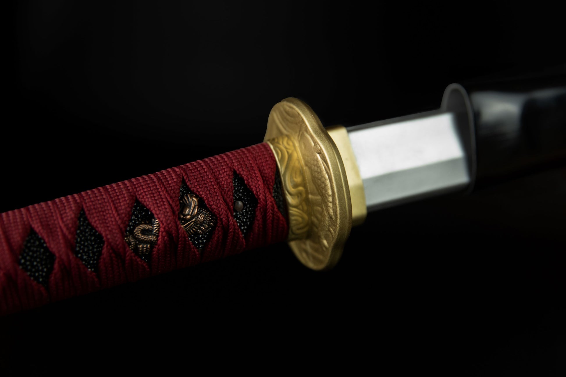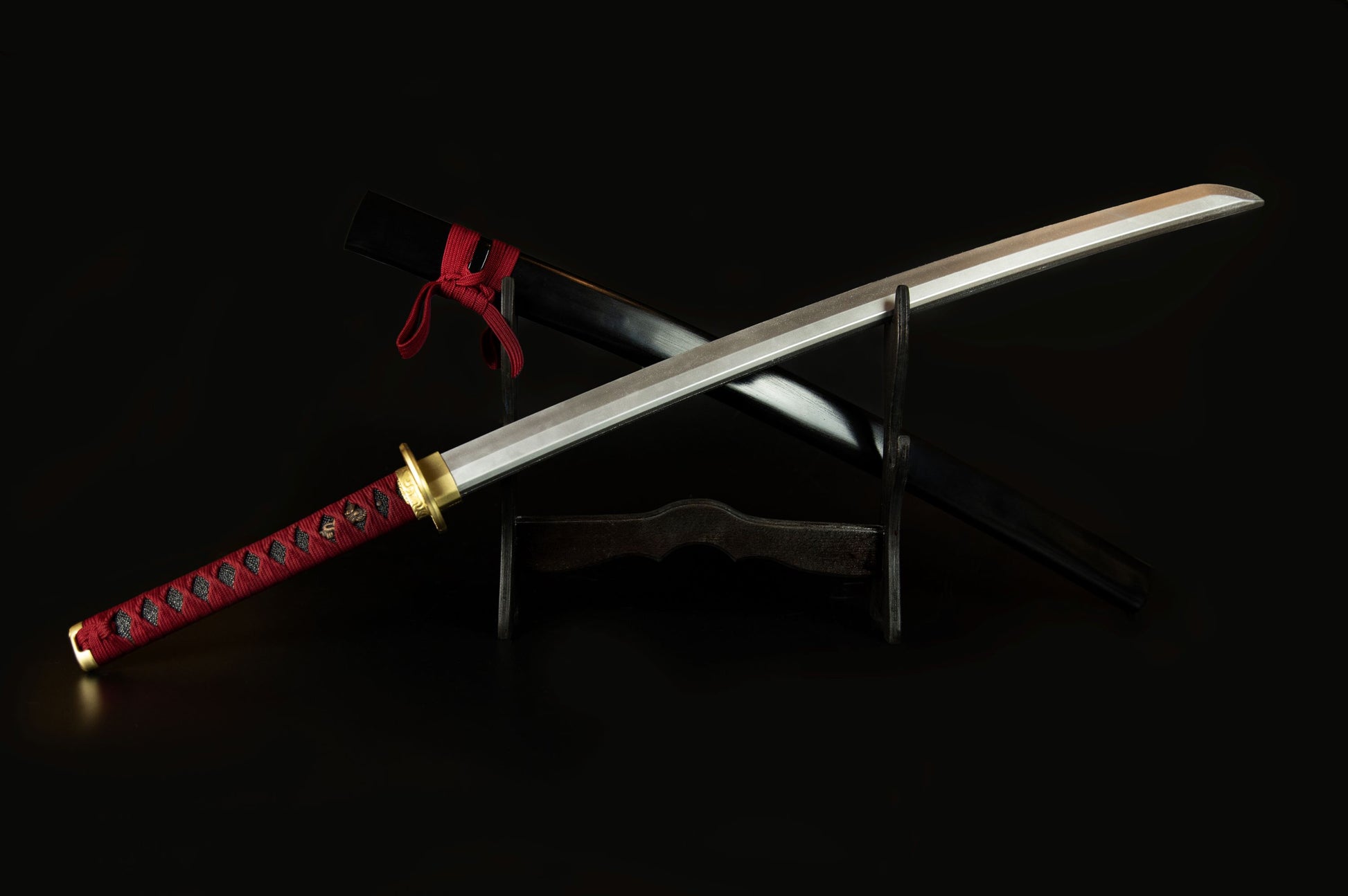 The katana was worn in scabbard (saya) thrust through a belt-like sash (obi) with the sharpened edge facing up. Ideally, samurai could draw the sword and cut the enemy in a single quick motion.