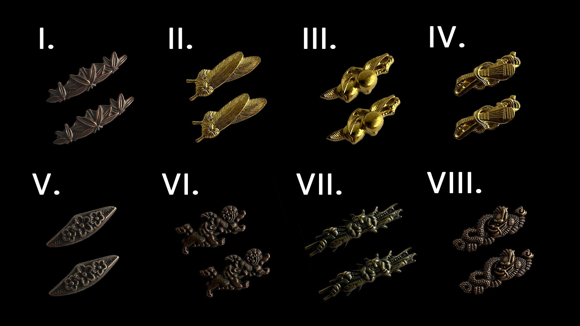 You can also choose the colour of the stingray skin (same) under the wrap (light beige or black). The last option is the embedded ornaments (menuki) under the wrap. There are 8 types of menuki to choose from.