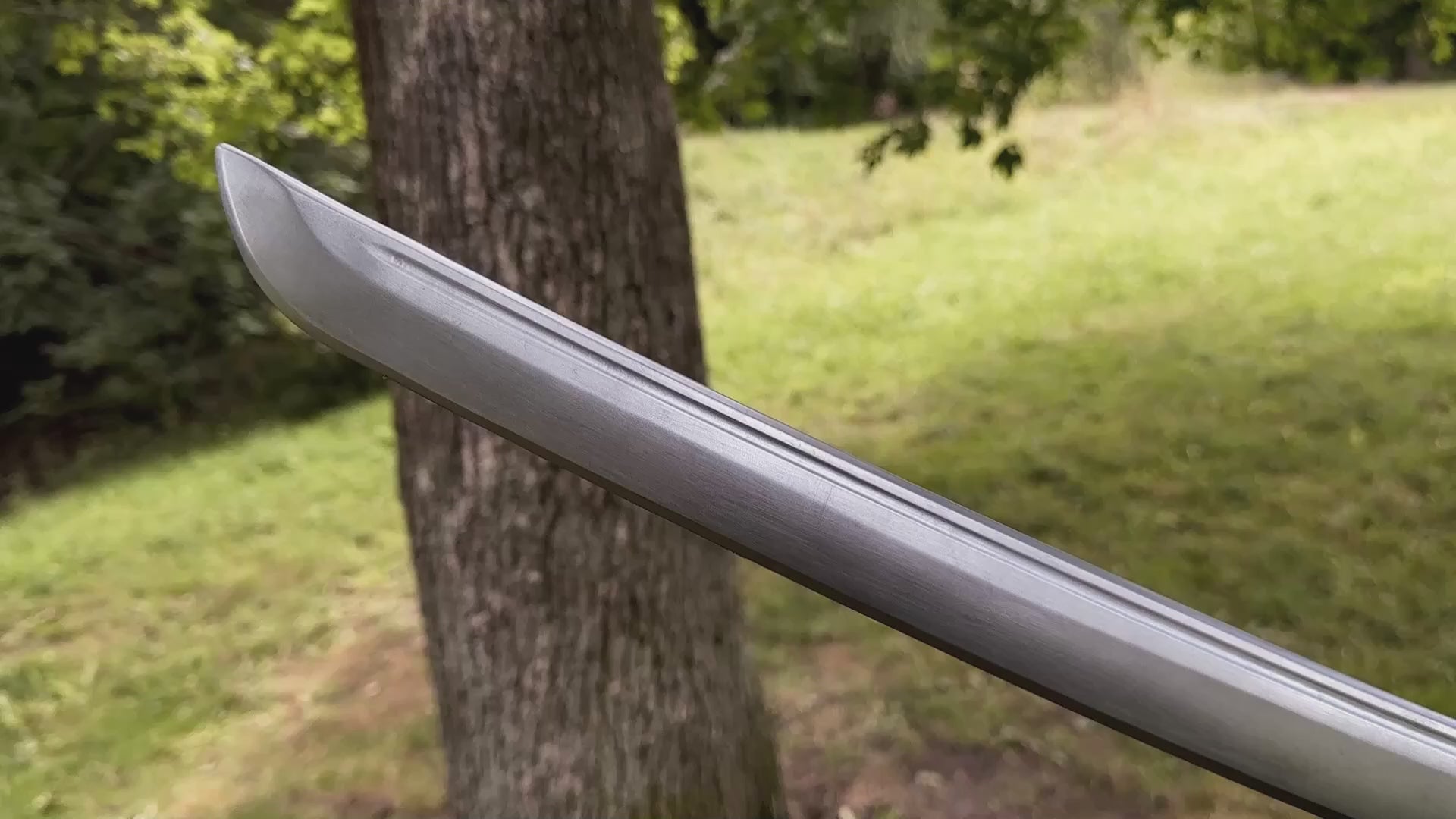 The hilt is 27 cm long and has a steel tube and lead in it for better balance. The pommel (kashira) and guard (tsuba) can be ordered in steel, graphite or brass colour.