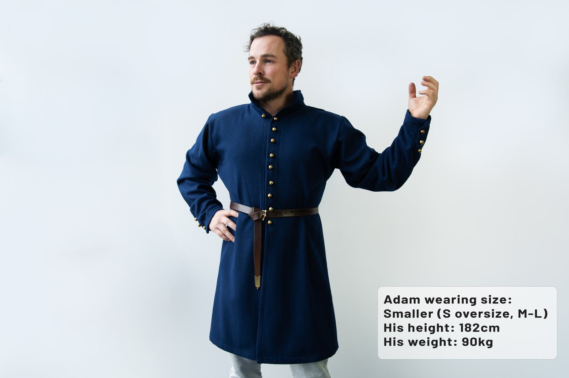 Our woolen Light Coat is inspired by one of the most common top garments throughout European history. It gets called different names in different contexts, like cotte, houppelande, dolama, gown, kaftan, zupan etc. The buttoned up, above the knee coat is a constant, practical option. The design we offer isn’t a complete reconstruction of any of the particular period versions, but works as the perfect basis for a fantasy impression based on anything from Iron Age Scythians and early medieval Norse to peasants, knights, cossacks and many more characters.