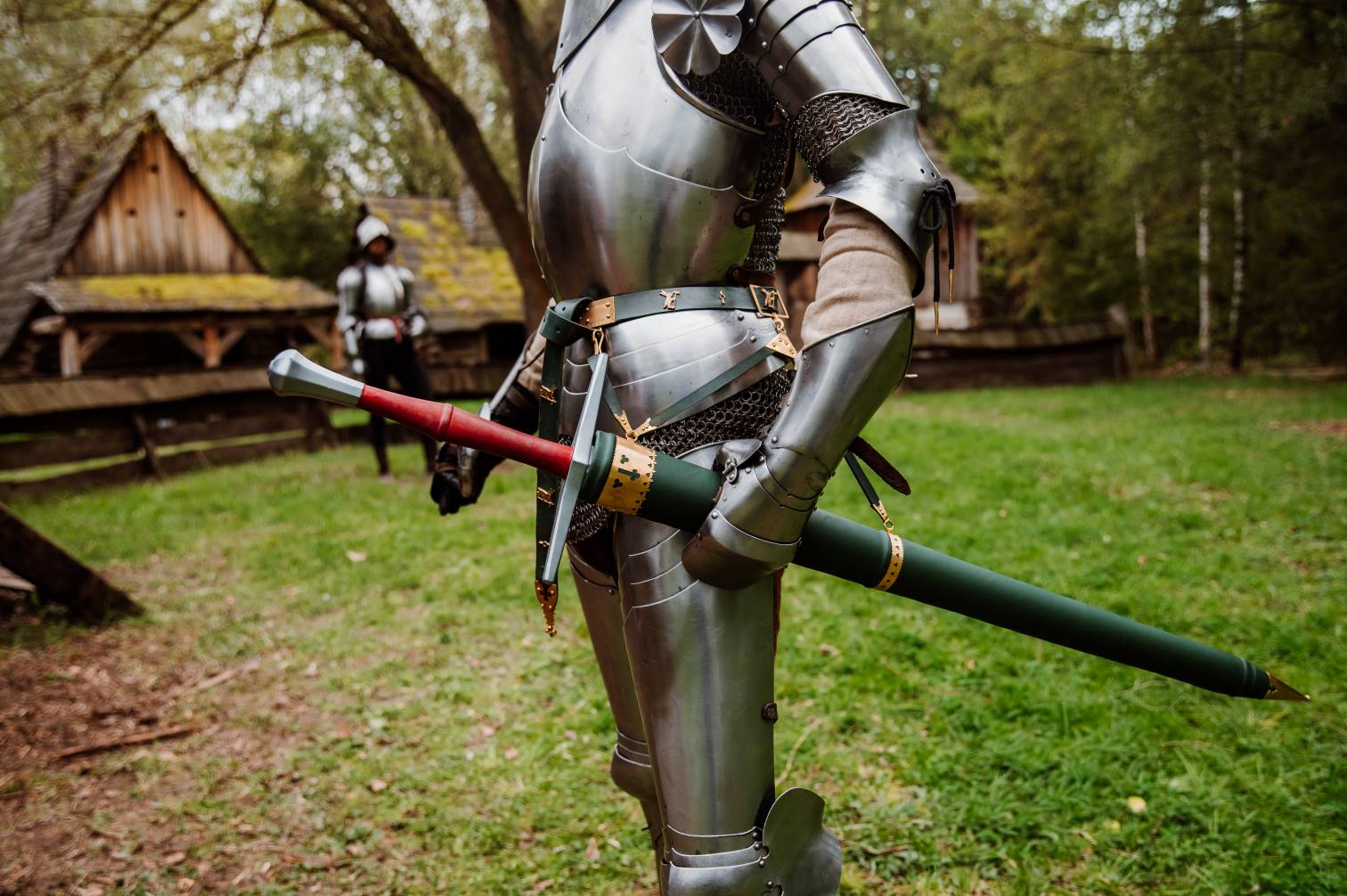 Avoid cutting the weapons with sharp objects, likewise do not hit hard or rough objects, like rocks, benches or trees. Try to avoid substantial blows to edges of armor, especially things like swordbreakers. Also, pay attention to the potential sharp edges of your own gauntlets, as some can cut into cross guards or other parts of the hilt when fencing. Make sure to avoid long term compression of the eapons, especially during storage. Our cross guards are made of hard rubber and do not mind blows in combat, they bend slightly but return immediately. The cross guards however can get deformed with extreme bending over longer periods, when they are for example put under luggage in the trunk of a car or in a chest.