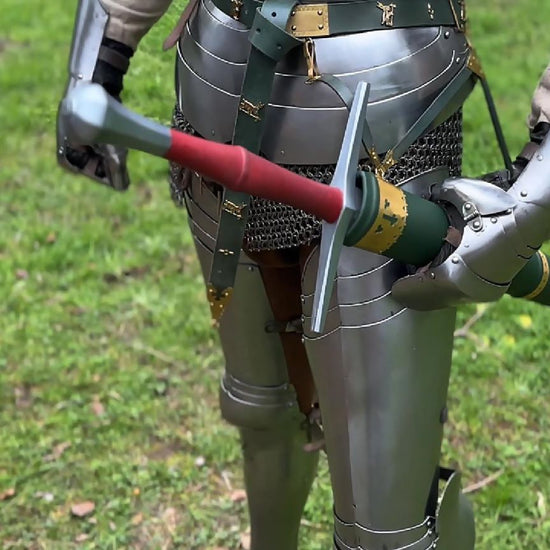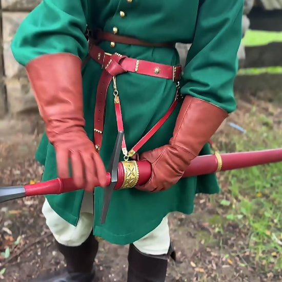 We offer scabbards and corresponding belts to pair with our hand and a half swords. The scabbard consists of an extremely durable PP plastic core, which is covered in cow leather with a metal mountings.