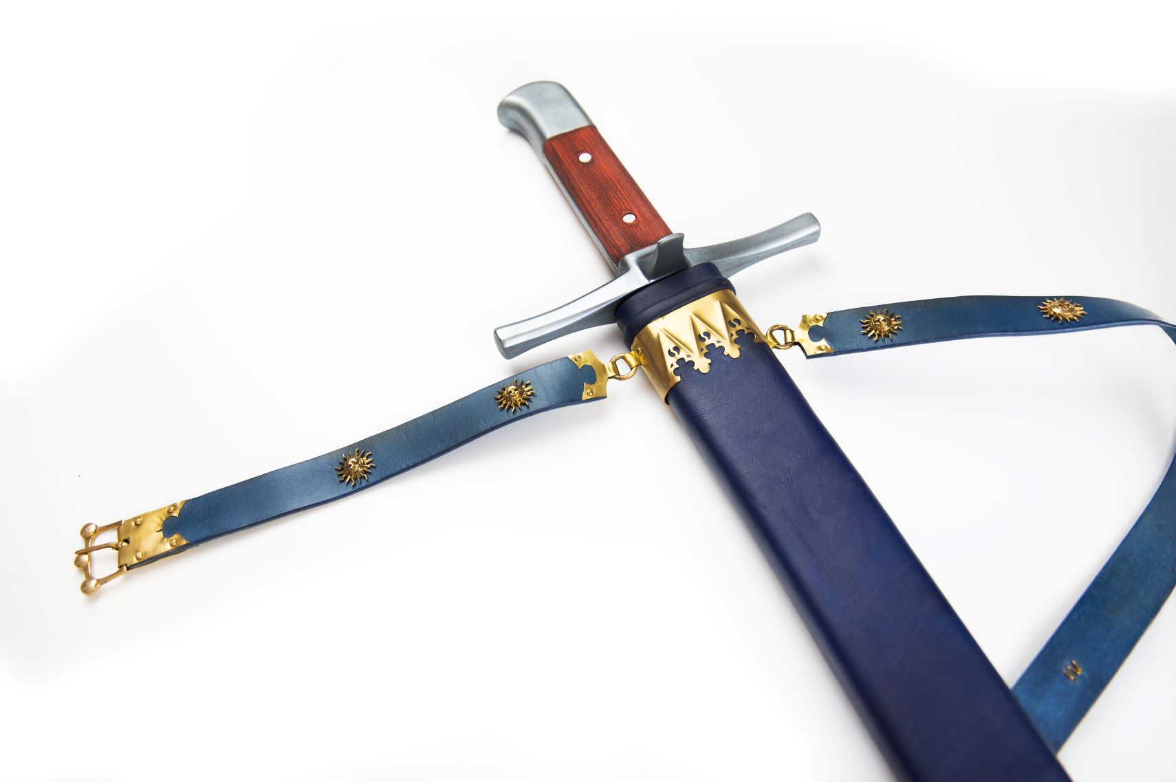 If you order the scabbard without our belt, you will receive it with brass decorations and belt attaching loops.