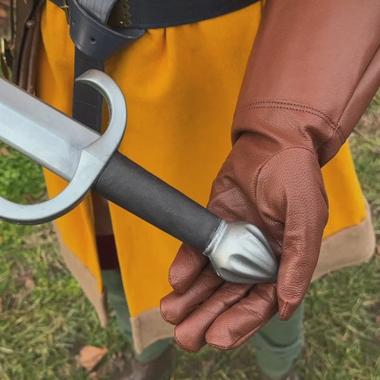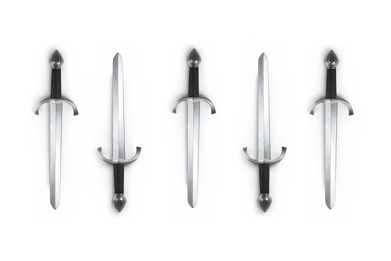 Avoid cutting the weapons with sharp objects, likewise do not hit hard or rough objects, like rocks, benches or trees. Try to avoid substantial blows to edges of armor, especially things like swordbreakers. Also, pay attention to the potential sharp edges of your own gauntlets, as some can cut into cross guards or other parts of the hilt when fencing. Make sure to avoid long term compression of the eapons, especially during storage. Our cross guards are made of hard rubber and do not mind blows in combat, they bend slightly but return immediately. The cross guards however can get deformed with extreme bending over longer periods, when they are for example put under luggage in the trunk of a car or in a chest.