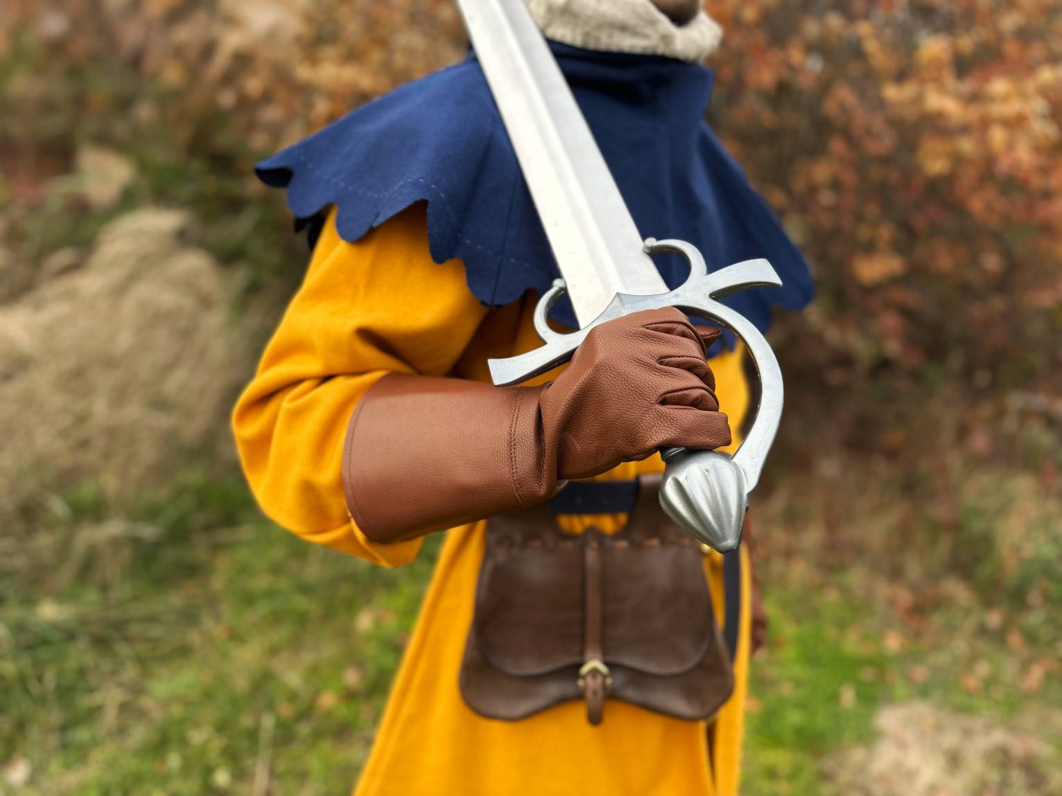 The Arming sword and Doge sword blades are ideally suited for this model, but you can order it with any other blade offered. A scabbard is unfortunately not available for none of them, due to the two finger rings on the hilt, but it can be carried in one of our Sword belts or Sword frogs.