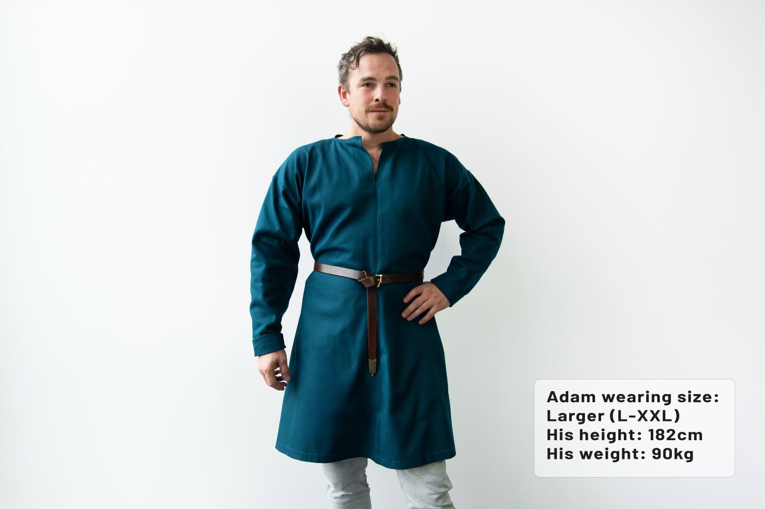The Tunic comes in 2 sizes, both of which are unisex. Size Smaller corresponds with common European confection measurements of S and M, size Larger fits sizes L and XXL. It is made to be relatively loose and we kept the sleeves long, to make sure they fit everyone in the given size category. If they are too long for you, you can simply roll them up.