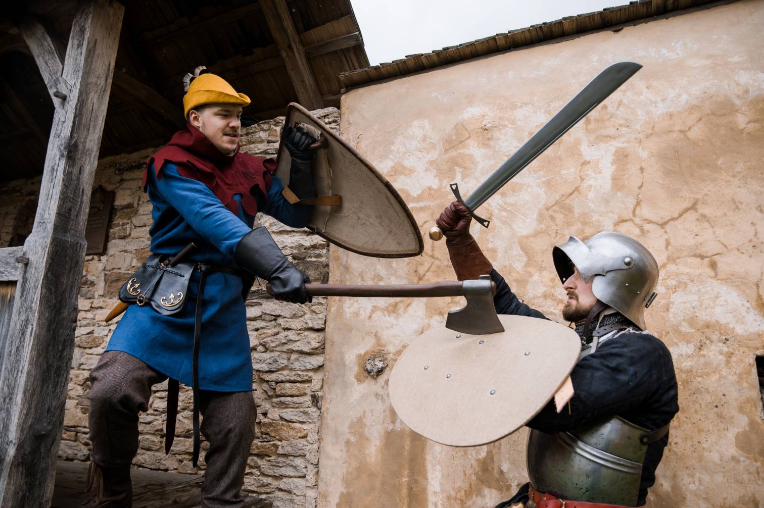 Avoid cutting the weapons with sharp objects, likewise do not hit hard or rough objects, like rocks, benches or trees. Try to avoid substantial blows to edges of armor, especially things like swordbreakers. Also, pay attention to the potential sharp edges of your own gauntlets, as some can cut into cross guards or other parts of the hilt when fencing. Make sure to avoid long term compression of the eapons, especially during storage. Our cross guards are made of hard rubber and do not mind blows in combat, they bend slightly but return immediately. The cross guards however can get deformed with extreme bending over longer periods, when they are for example put under luggage in the trunk of a car or in a chest.